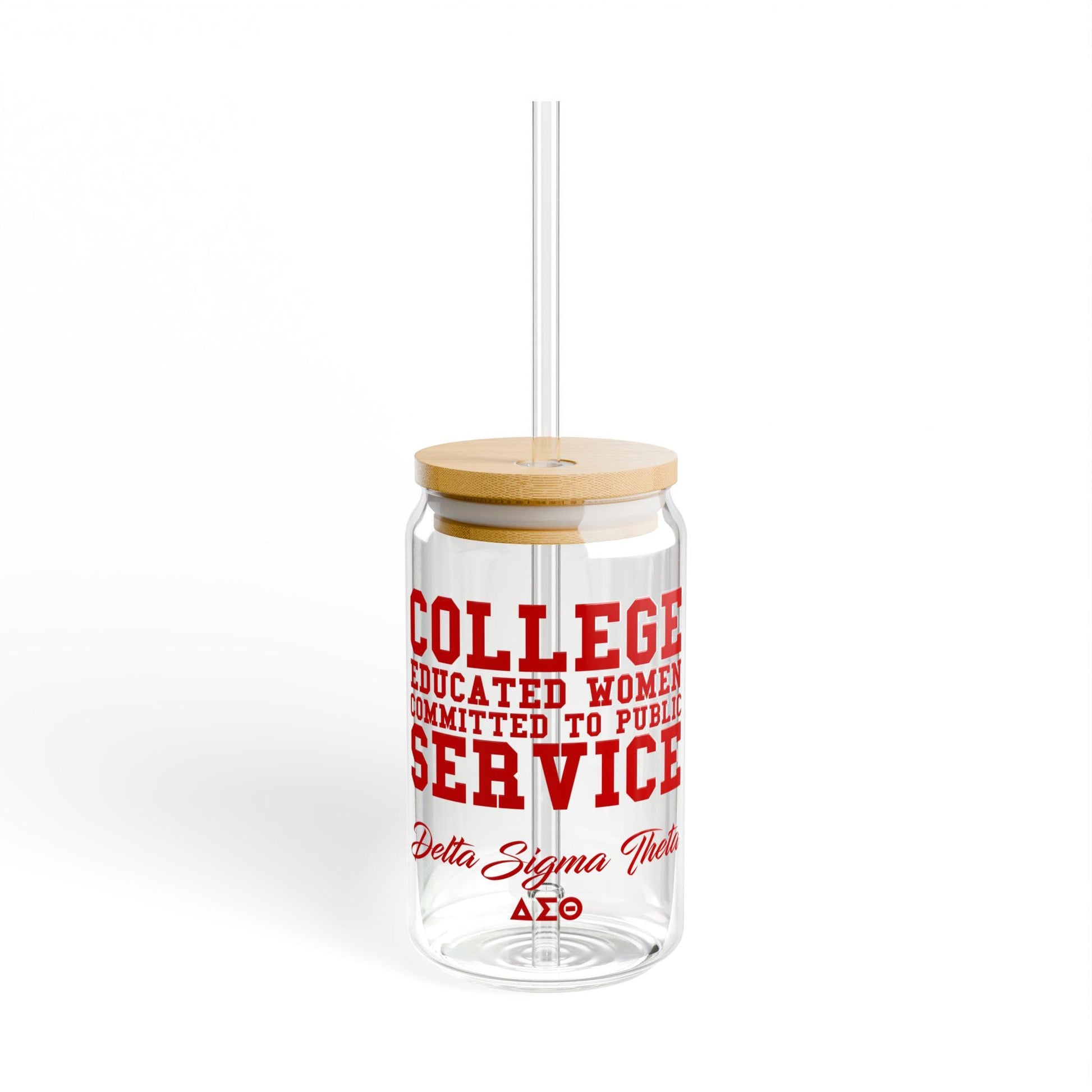 Delta Sigma Theta Mission Statement Glass Mug | 16oz DST Sipper Tumbler | Sorority Gift Must-Have | Delta Para | Divine Nine | w/ Straw+Lid see